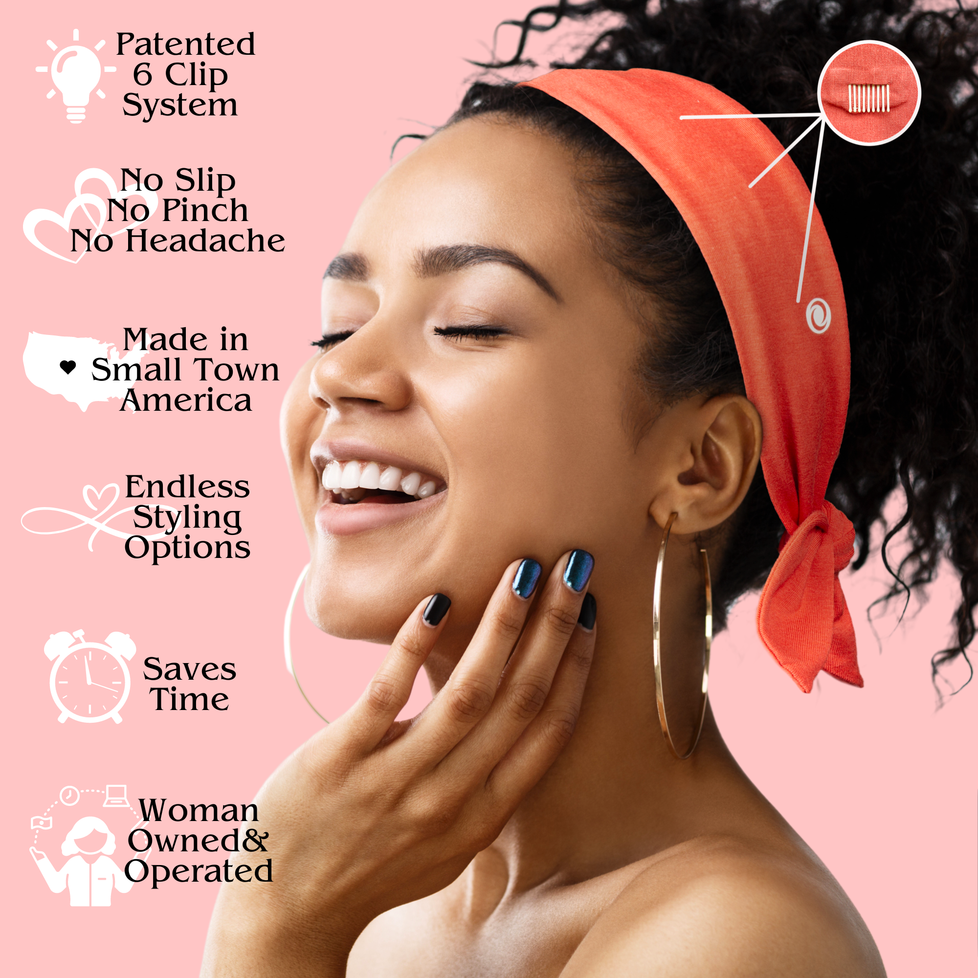 Introducing our revolutionary SWAY short stretch headband, equipped with a patented 6-clip system guarantees it will stay securely in your hair regardless of what your day brings. Say goodbye to constant readjustments and slipping mishaps!