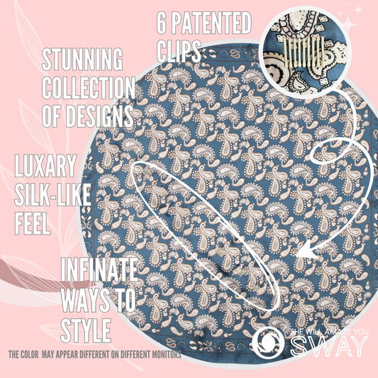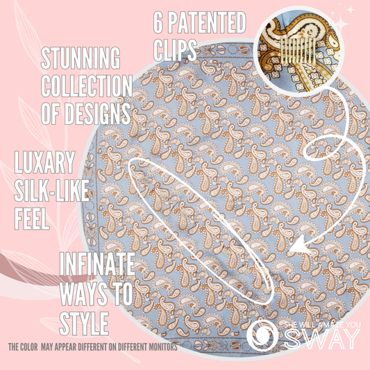 I have 4 beautiful short satin scarves so far, and I’ve ordered 3 short stretch headbands to have some solids in the mix. They add such a touch of class, I never have to worry about them slipping. I get LOTS of compliments and I share SWAY’s website often!