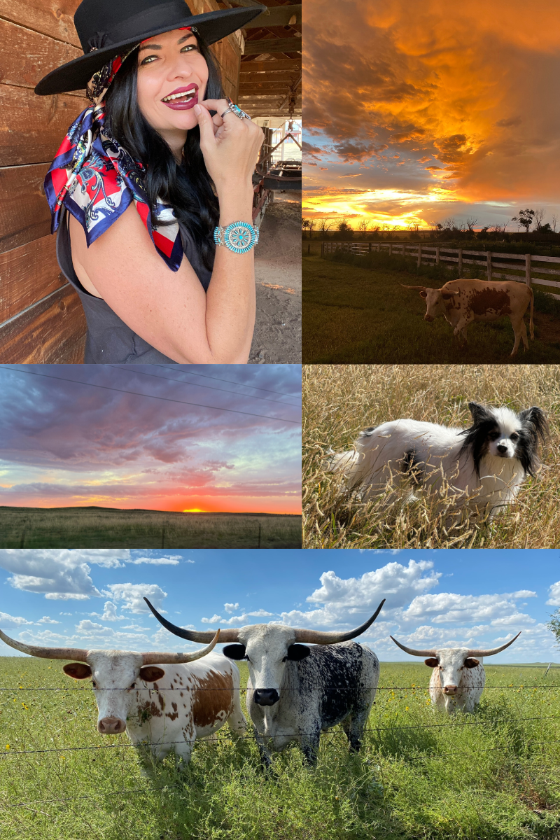 I live on a 4th generation family ranch in small-town Colorado, where my headbands are made on Main Street. Out here life is a little slower. I share it with my old dog, a group of formerly feral cats who now sleep like royalty on Tempur-Pedic beds, and three Longhorns (Patches, Sunny and Cher) who are family — they’ll live out their days here, growing old peacefully and exactly where they belong. It’s a grounded, hands-in-the-dirt kind of life that keeps me centered, grateful, and deeply connected to what matters most. But out where cattle outnumber humans I was so excited about the challenge and impact of creating a whole new industry that is traditionally known for its agriculture!