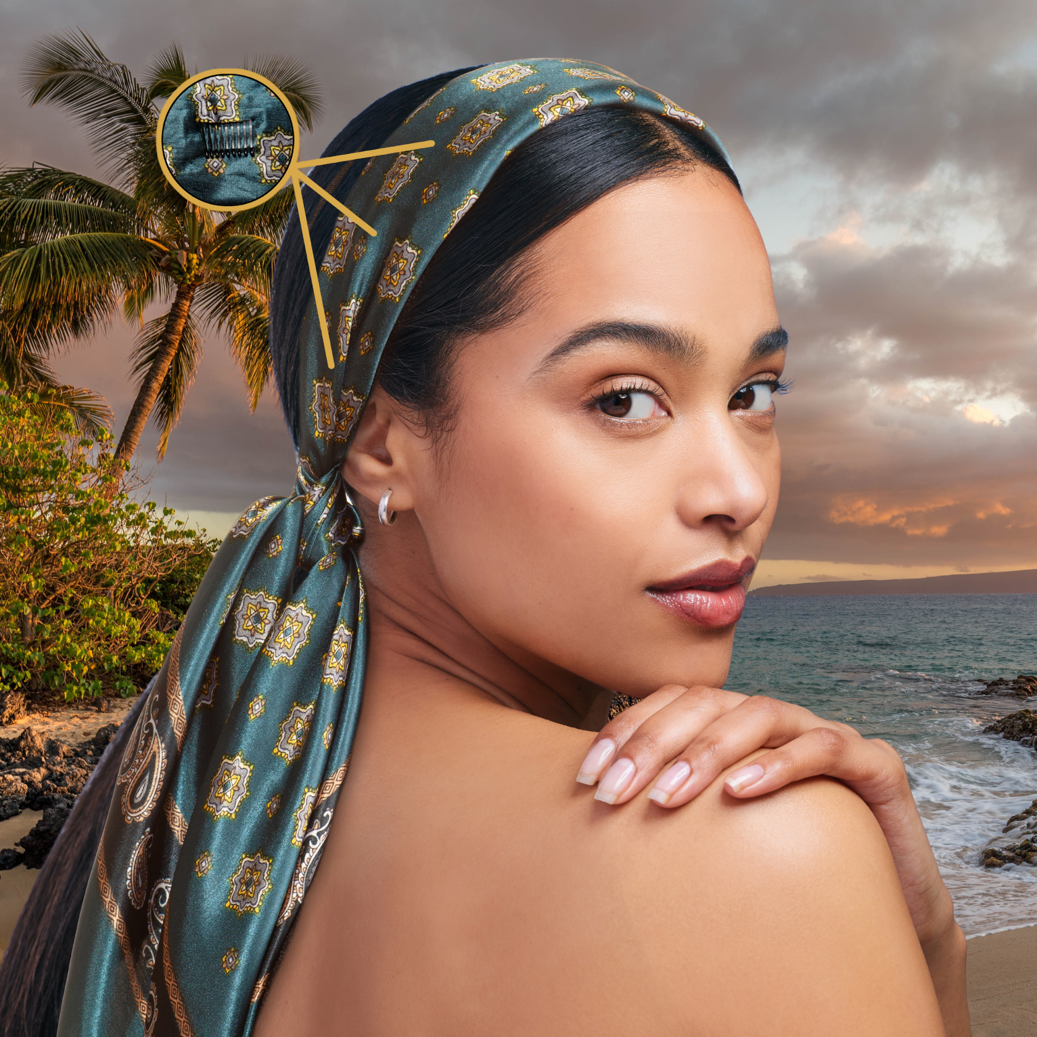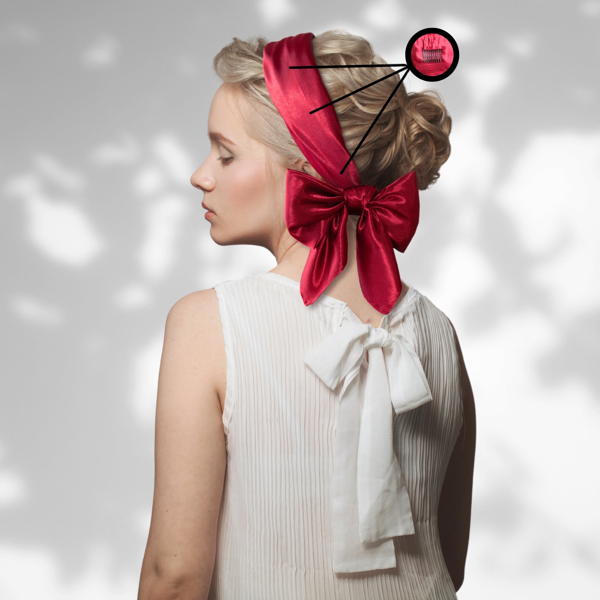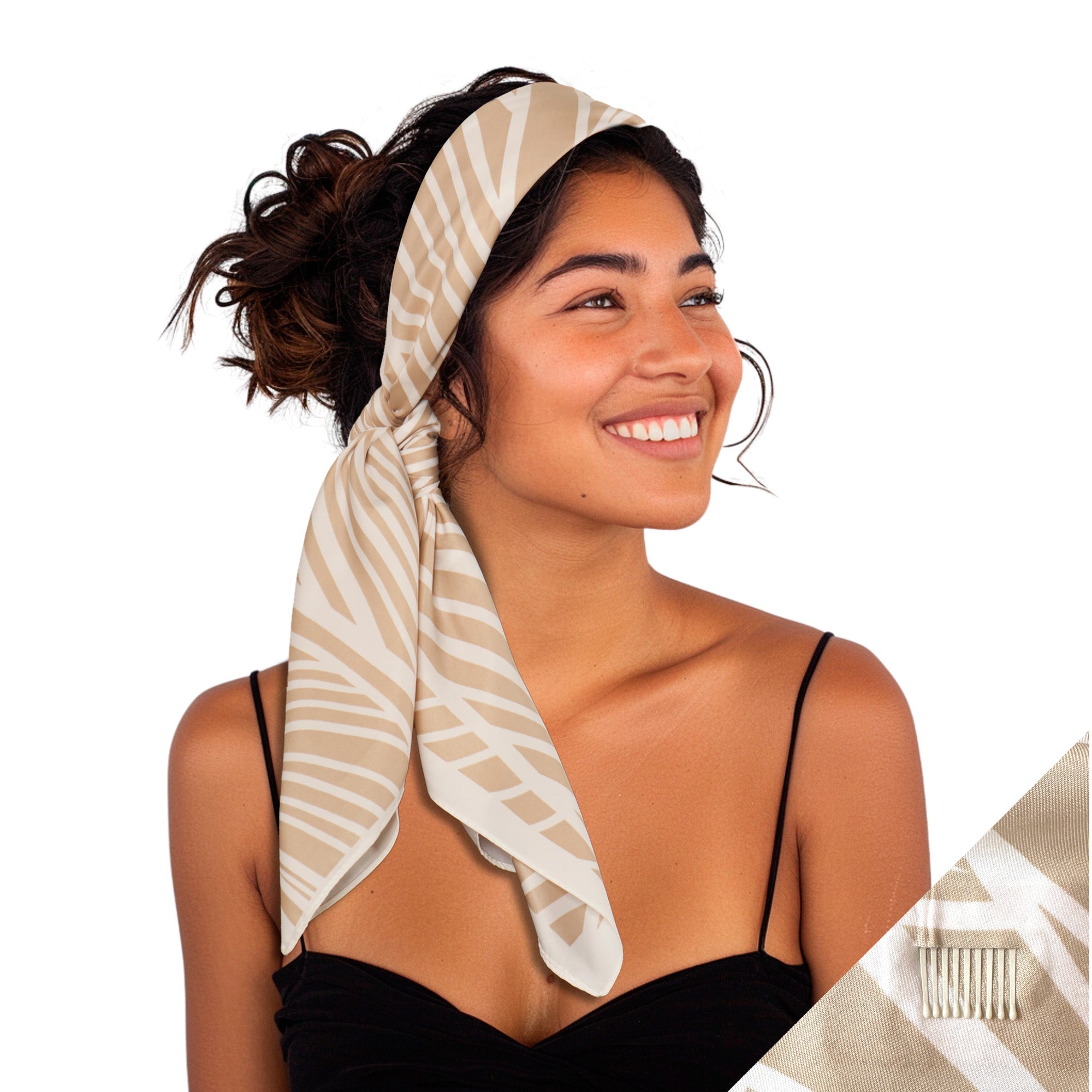 The embodiment of elegance and innovation – the patented SWAY large satin scarf headband! Unlock the gateway to endless possibilities and elevate your style to new heights with this revolutionary 6-clip system that ensures an impeccable hold, so you can confidently flaunt your flawless looks all day long.