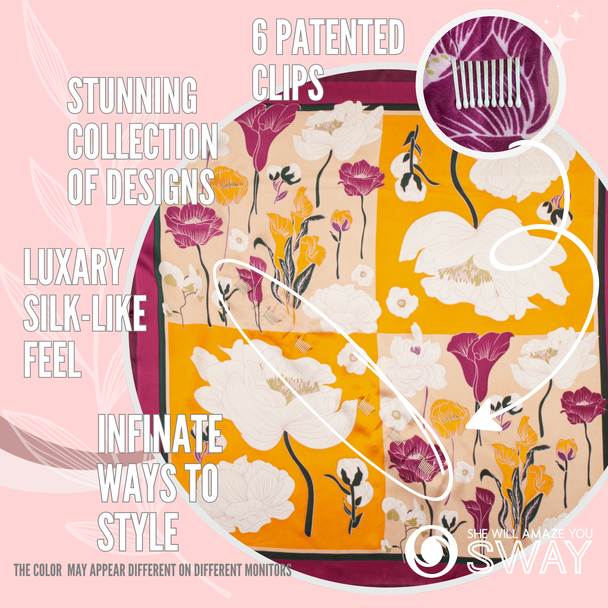 A luxury satin scarf headband designed for effortless style and all-day hold. This 2026 hair trend combines the elegance of silk and satin scarves with SWAY’s patented non-slip technology—so it looks elevated and stays perfectly in place.