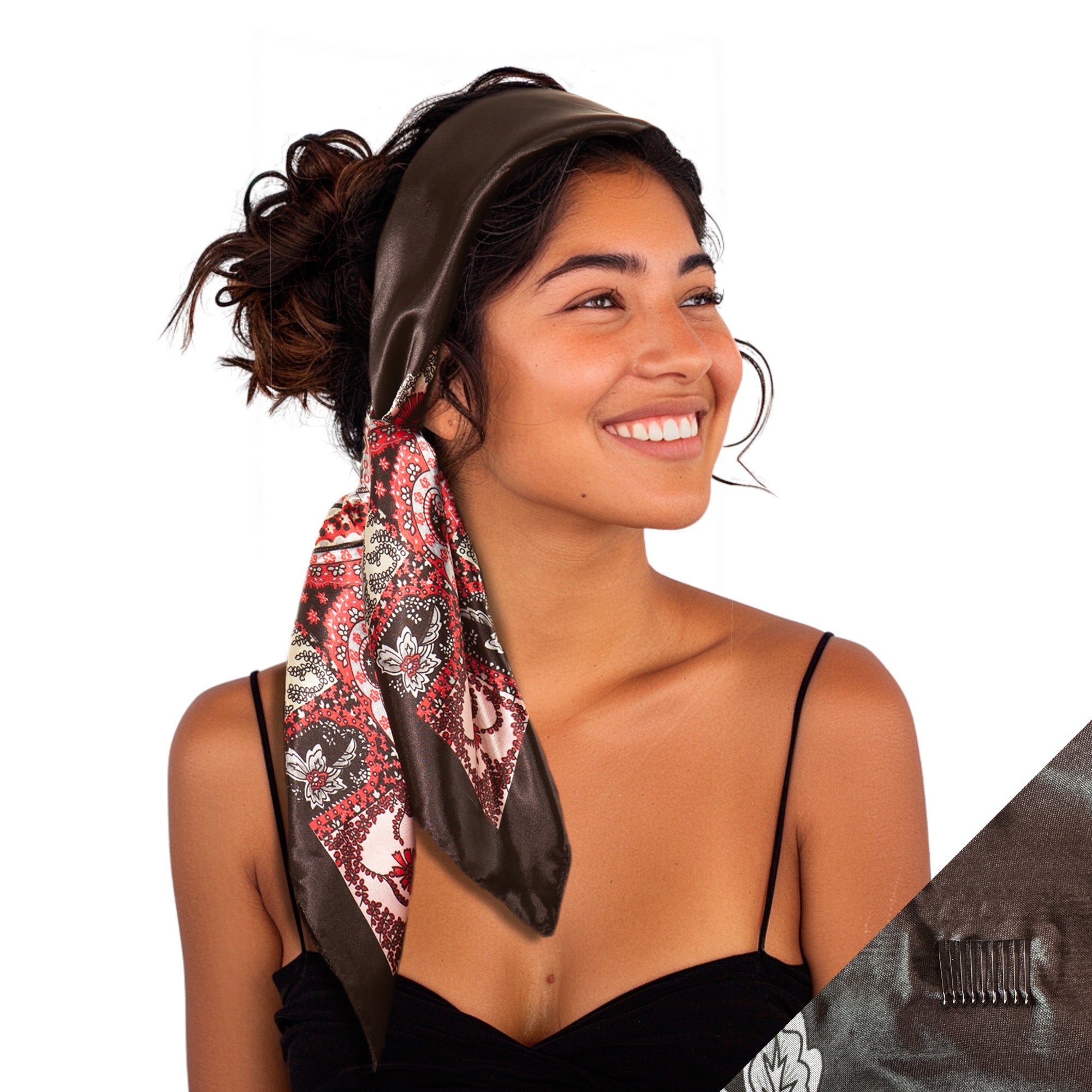 Introducing the embodiment of elegance and innovation – the patented SWAY large satin scarf headband! Unlock the gateway to endless possibilities and elevate your style to new heights with this revolutionary 6-clip system that ensures an impeccable hold, so you can confidently flaunt your flawless looks all day long.