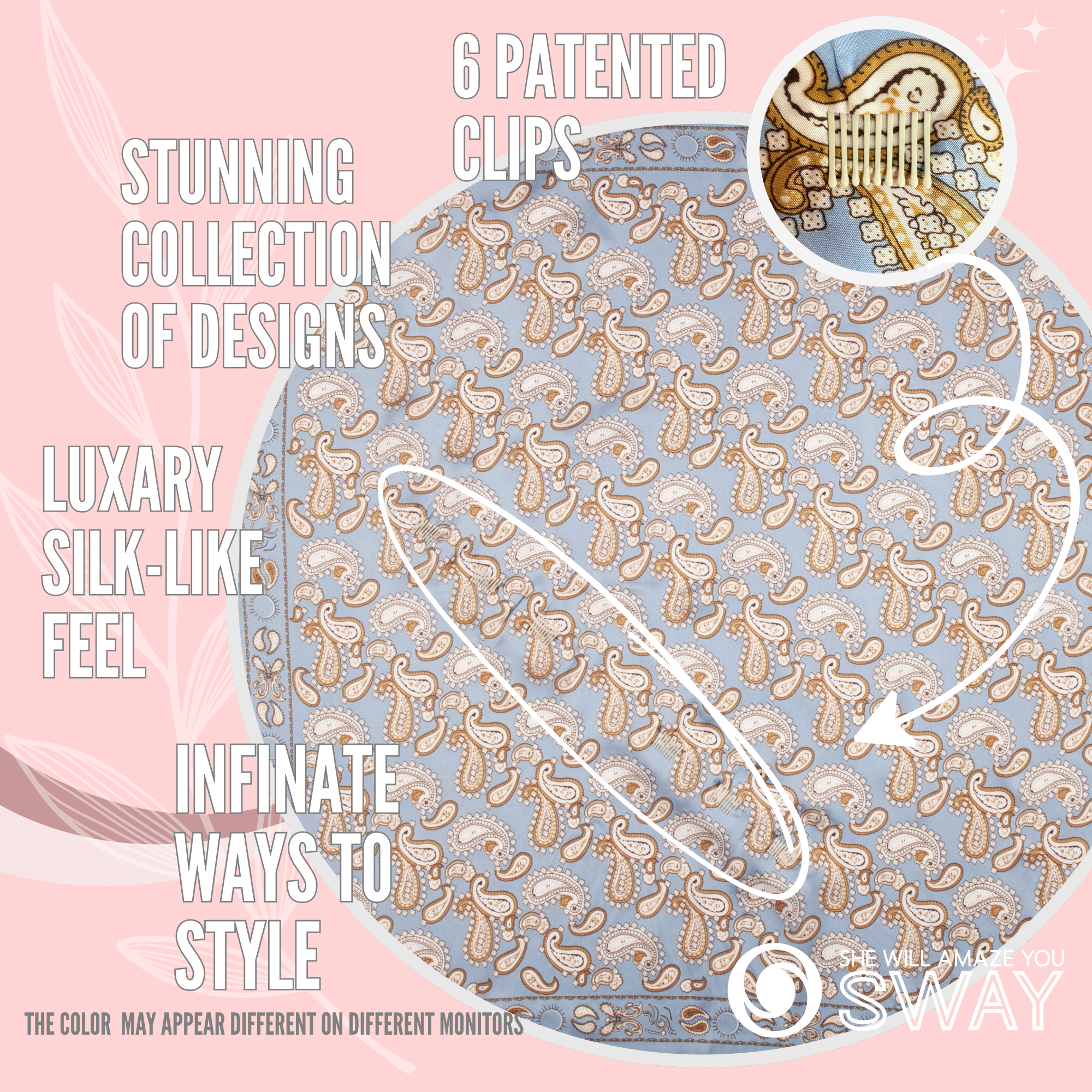A luxury satin scarf headband designed for effortless style and all-day hold. This 2026 hair trend combines the elegance of silk and satin scarves with SWAY’s patented non-slip technology—so it looks elevated and stays perfectly in place.
