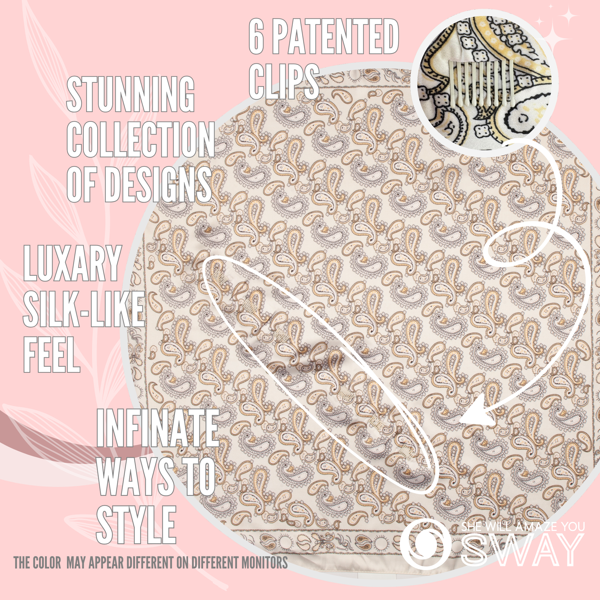 A luxury satin scarf headband designed for effortless style and all-day hold. This 2026 hair trend combines the elegance of silk and satin scarves with SWAY’s patented non-slip technology—so it looks elevated and stays perfectly in place.