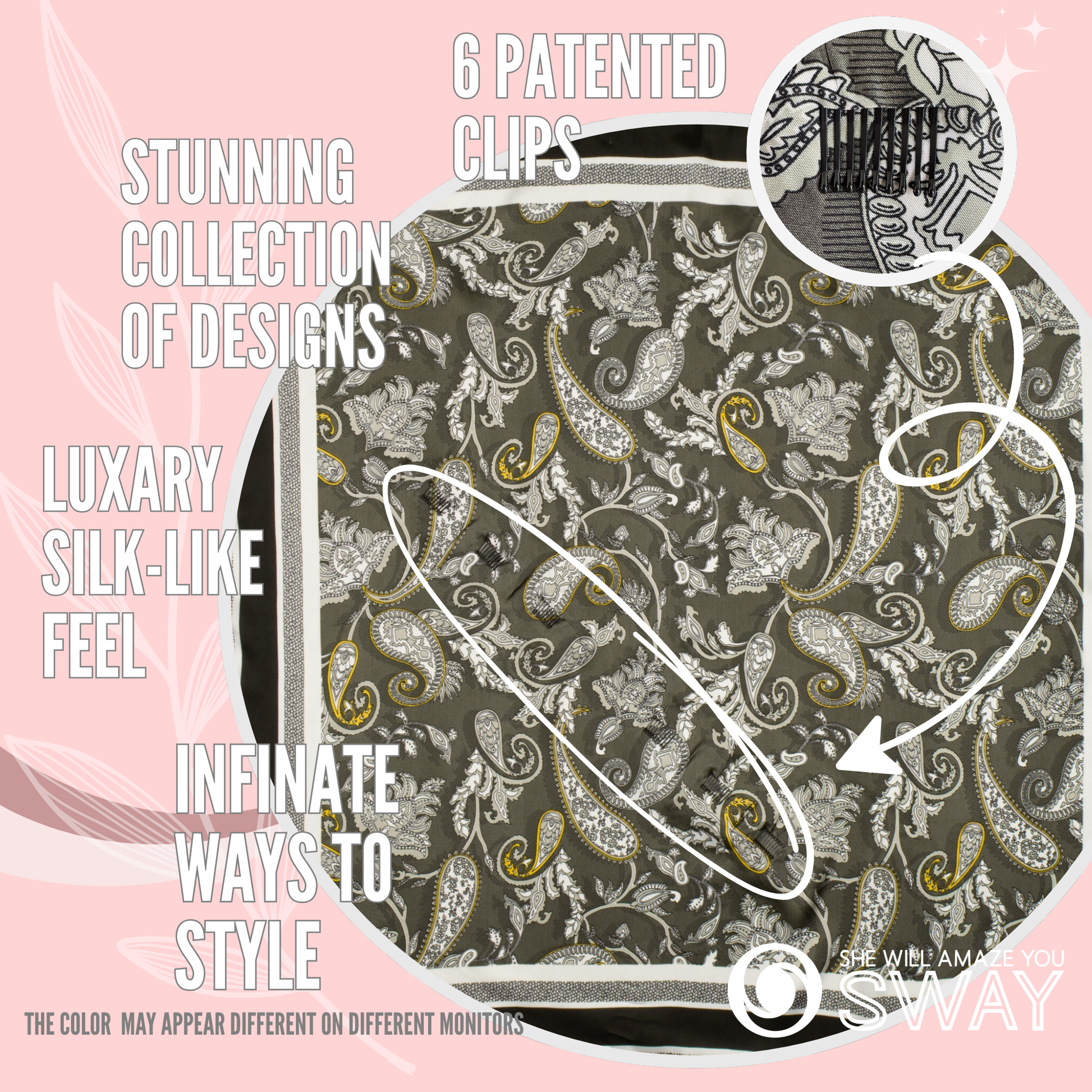 Designed with SWAY's cutting-edge 6-clip system, this headband guarantees an unparalleled level of security, ensuring it will never slip out of your hair. Whether you're conquering the boardroom or dancing the night away, this headband will stay flawlessly in place, granting you the confidence to embrace any moment with grace and poise.